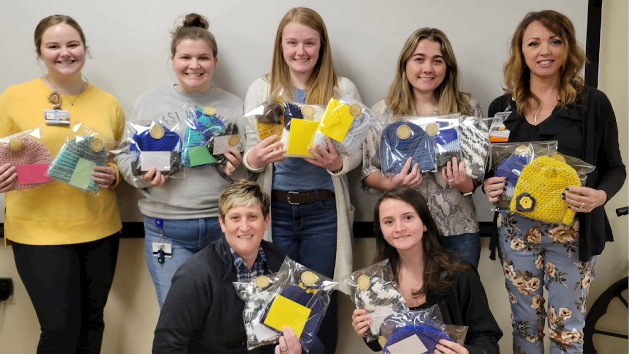 Showing Their Support: WVU School of Nursing Keyser Campus students crochet caps for cancer patients April 7, 2022