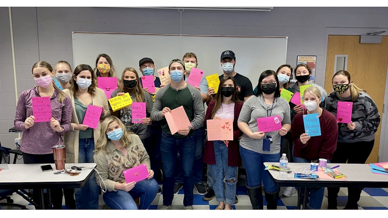 Sharing the love: Nursing students create more than 500 Valentine’s cards for WVU Medicine Children’s patients, nursing home residents February 11, 2022